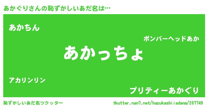 | ヒーロー風カッコイイあだ名 | 『ウルトラあかぐりマン』『ネオアカグリ』 |