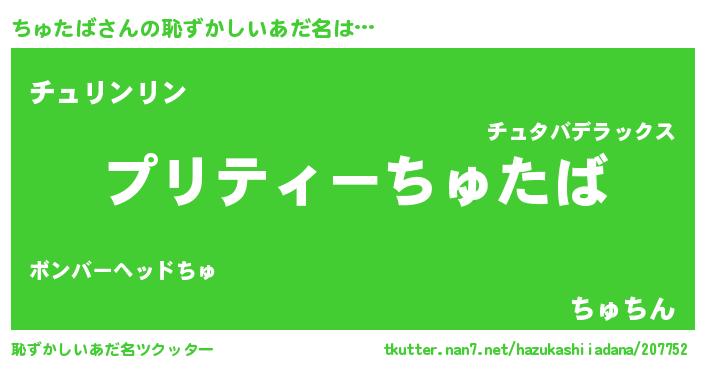 | 意味不明あだ名 | 『ペロリンちゅたば』『永久保存ちゅたば』 |
