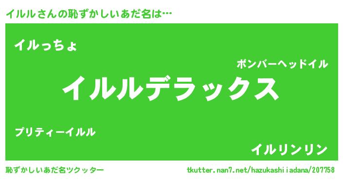 | 意味不明あだ名 | 『自称イルル』『イルルフォーエバー』 |
