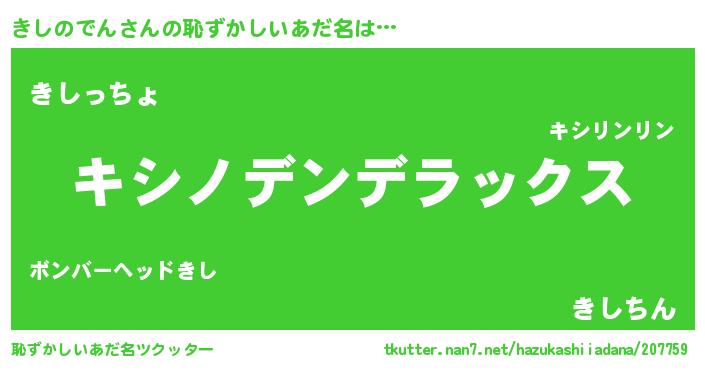 | 意味不明あだ名 | 『自称きしのでん』『永久保存きしのでん』 |