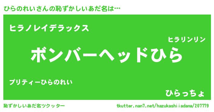 | ヒーロー風カッコイイあだ名 | 『慈愛の使者ひらのれい』『仮面ヒラダー』 |