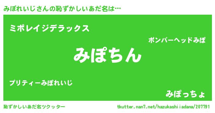 | ヒーロー風カッコイイあだ名 | 『ネオミポレイジ』『スーパーミポレイジ』 |