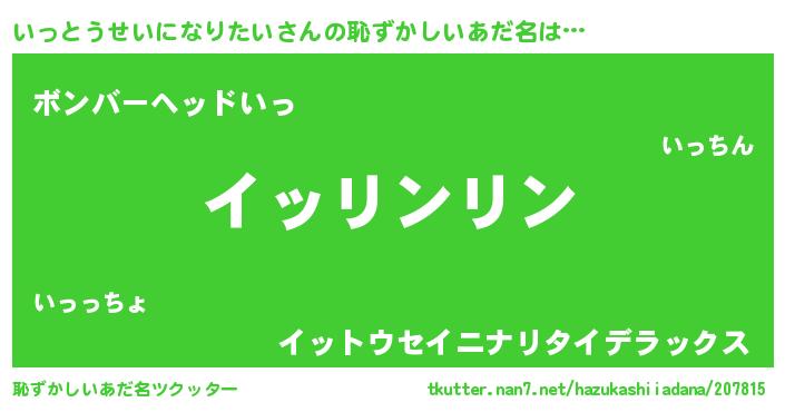 | 意味不明あだ名 | 『とにかく怪しいいっとうせいになりたい』 |