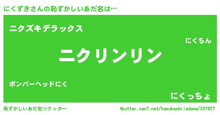 | ヒーロー風カッコイイあだ名 | 『天弓騎士ニク』『究極戦士ニクズキ』 |