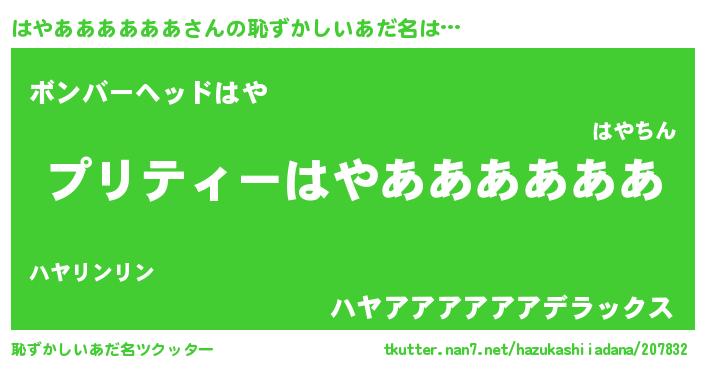 | ヘコむあだ名 | 『はやふぇ~』『はやああああああ(小並感)』 |