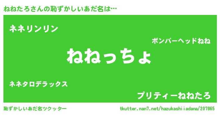 | 欧米人風あだ名 | 『ねねたろクリステル』 |