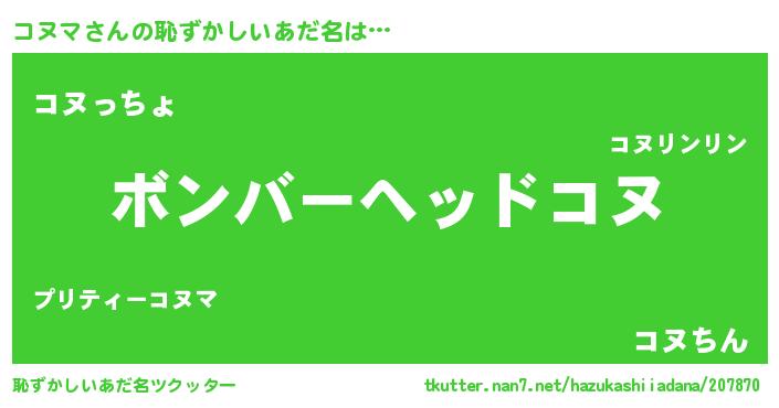 | ヘコむあだ名 | 『レバニラ』『コヌマ(遠い目)』 |