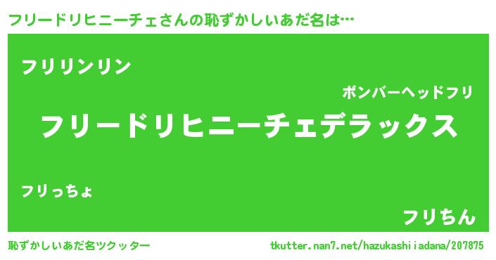 | 女子向けラノベタイトル風あだ名 | 『フリードリヒニーチェなんてお断りですっ。』 |