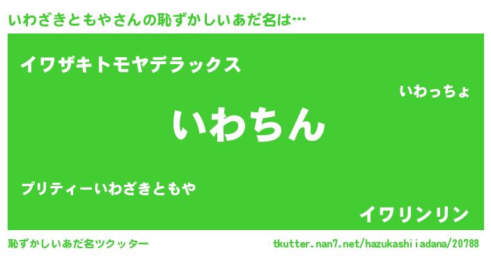 | ヘコむあだ名 | 『いわざきともや(遠い目)』『いわぷりん』 |