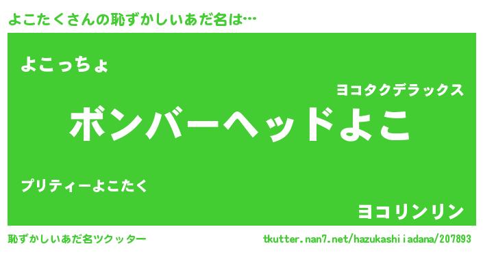 | ヘコむあだ名 | 『なまこ酢』『よこお』『よこにゅー』 |