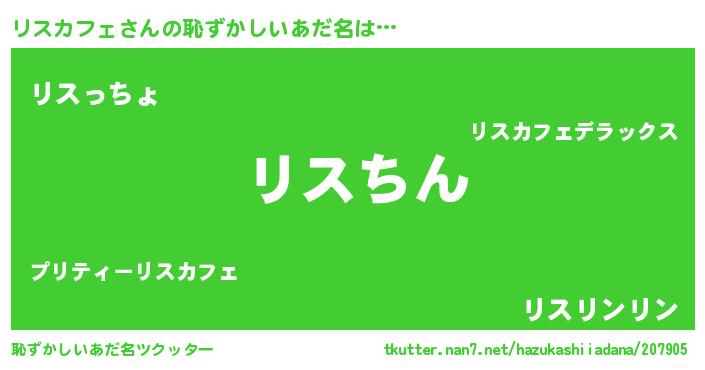 | ヒーロー風カッコイイあだ名 | 『ネオリスカフェ』『黄金騎士リス』 |