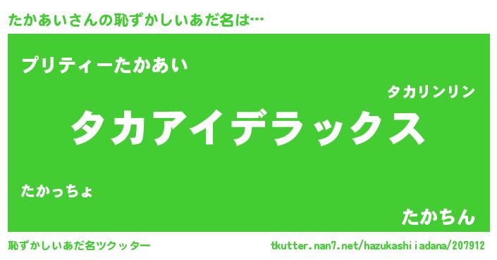 | ヘコむあだ名 | 『たかっふぃ~』『たかあい(震え声)』 |