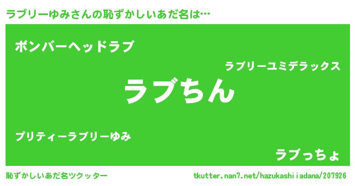 | ヘコむあだ名 | 『ラブリーゆみ(苦笑)』『酢こんぶ』 |