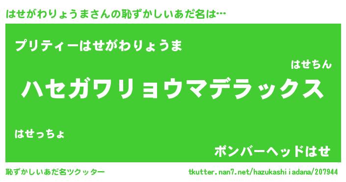 | 意味不明あだ名 | 『自称はせがわりょうま』 |