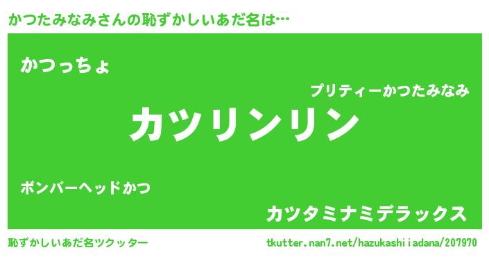 | 男性向けラノベタイトル風あだ名 | 『かつたみなみの嫁は女の子じゃないと思った?』 |