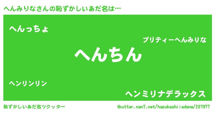 | 意味不明あだ名 | 『永久保存へんみりな』『自称へんみりな』 |