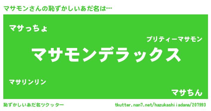 | 意味不明あだ名 | 『自称マサモン』『マサモンフォーエバー』 |