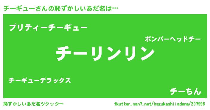 | 意味不明あだ名 | 『とにかく怪しいチーギュー』 |