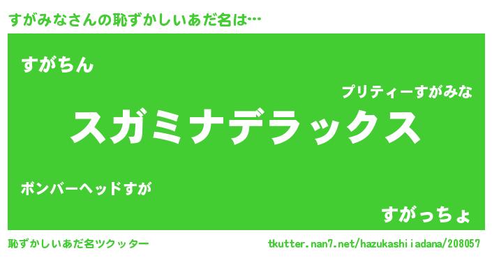 | 意味不明あだ名 | 『自称すがみな』『永久保存すがみな』 |