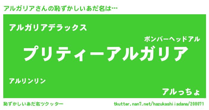 | 意味不明あだ名 | 『ペロリンアルガリア』『自称アルガリア』 |