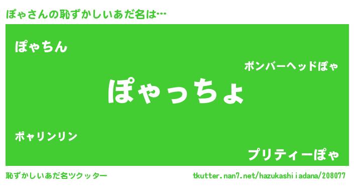 | 男性向けラノベタイトル風あだ名 | 『緋弾のポャ』『ポャアートオンライン』 |