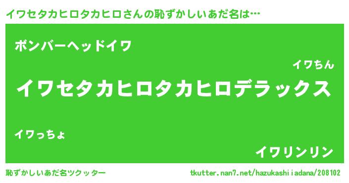 | 意味不明あだ名 | 『自称イワセタカヒロタカヒロ』 |