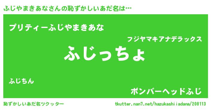 | 意味不明あだ名 | 『住所不定無職ふじやまきあな(91歳)』 |
