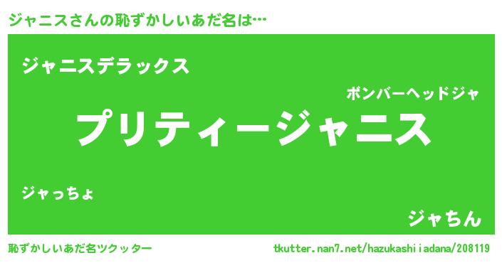 | 意味不明あだ名 | 『ペロリンジャニス』『自称ジャニス』 |
