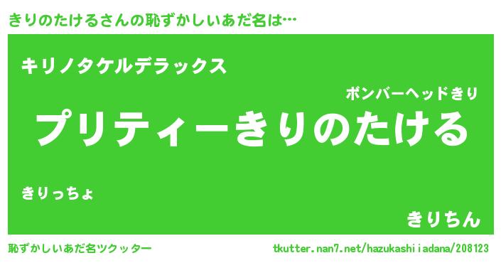 | ヒーロー風カッコイイあだ名 | 『スーパーキリノタケル』『仮面キリダー』 |