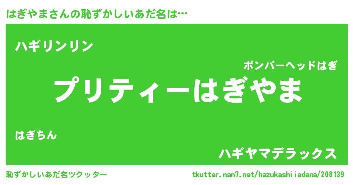 | 自動車の名前っぽいあだ名 | 『ハギティマ』『ハルトギパン』 |