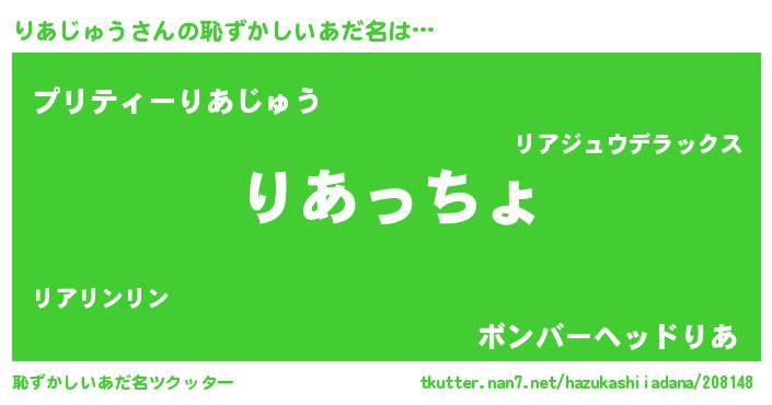 | ヘコむあだ名 | 『なまこ酢』『りあもー』『りあお』 |