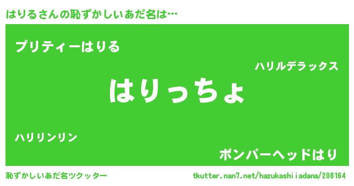 | ヒーロー風カッコイイあだ名 | 『ウルトラはりるマン』『仮面ハリダー』 |