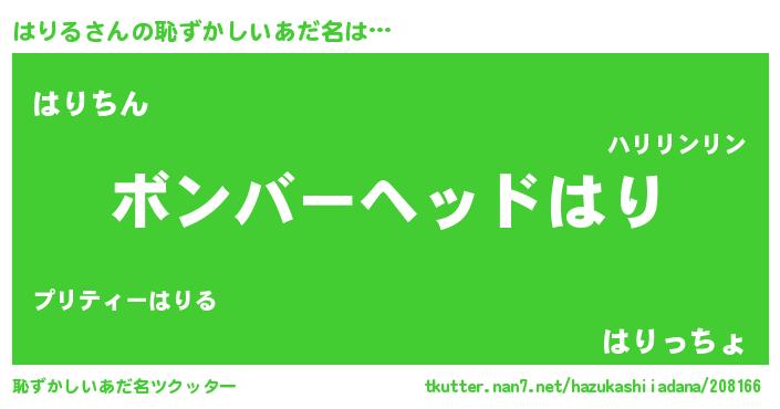 | ヘコむあだ名 | 『はりる(笑)』『酢こんぶ』『はりを』 |