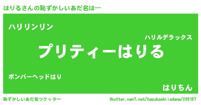 | 意味不明あだ名 | 『ペロリンはりる』『永久保存はりる』 |