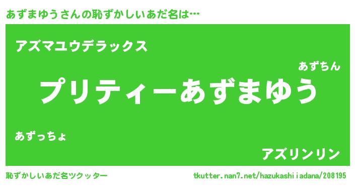 | ヒーロー風カッコイイあだ名 | 『仮面アズダー』『スーパーアズマユウ』 |