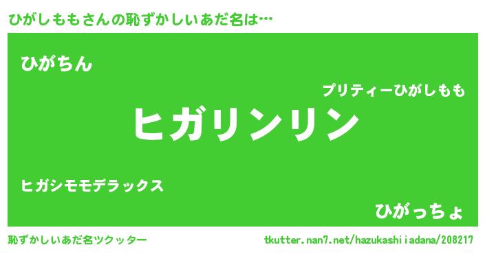 | ヘコむあだ名 | 『ひがぷりん』『ひがしもも(小並感)』 |