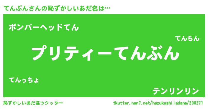 | ヘコむあだ名 | 『てんにー』『てんっぺ』『酢こんぶ』 |