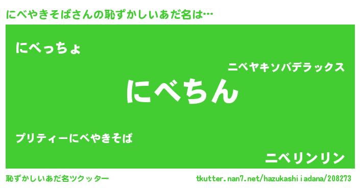 | 可愛いあだ名 | 『にべやきそばママ』『にべぷりん』 |