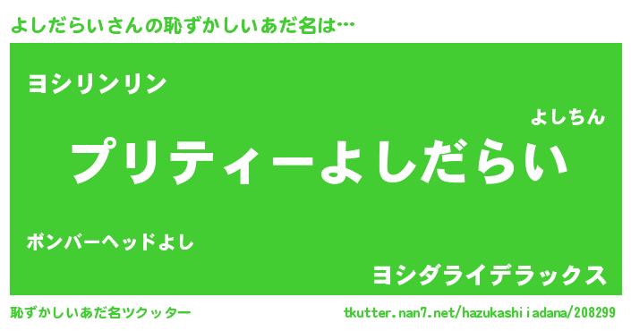 | 男性向けラノベタイトル風あだ名 | 『ヨシダライアートオンライン』 |