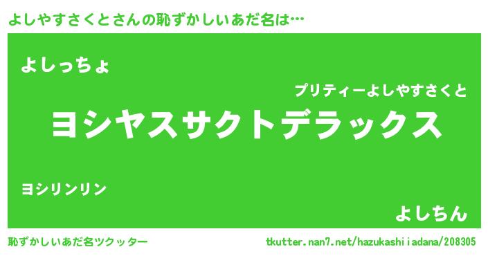 | 意味不明あだ名 | 『自称よしやすさくと』 |