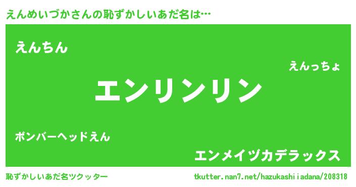 | ヘコむあだ名 | 『えんお』『えんめいづか(震え声)』 |