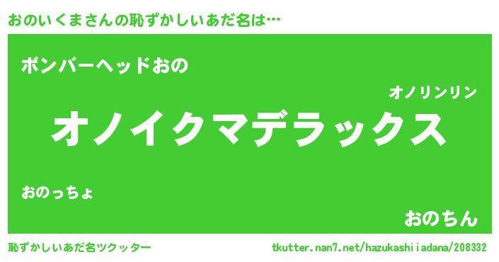 | 意味不明あだ名 | 『自称おのいくま』『永久保存おのいくま』 |