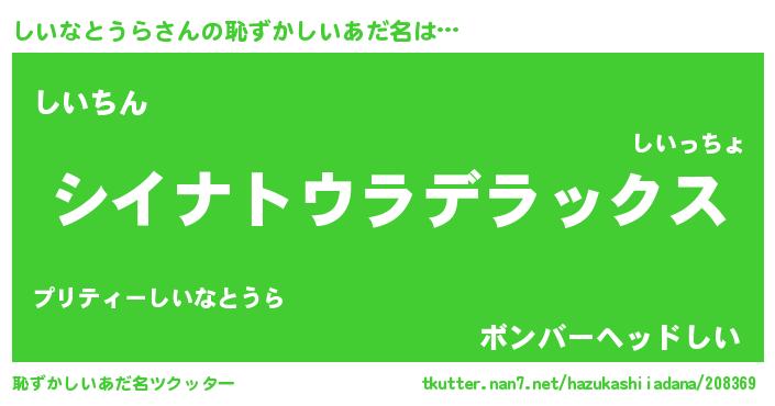 | 意味不明あだ名 | 『自称しいなとうら』 |