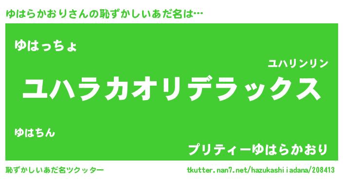 | ヒーロー風カッコイイあだ名 | 『究極戦士ユハラカオリ』『仮面ユハダー』 |