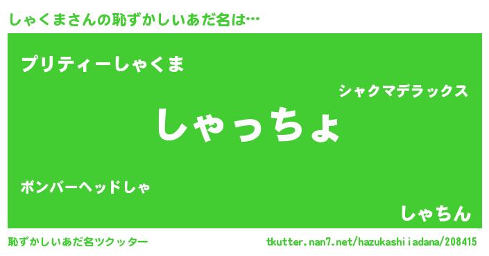 | 意味不明あだ名 | 『しゃくまフォーエバー』 |