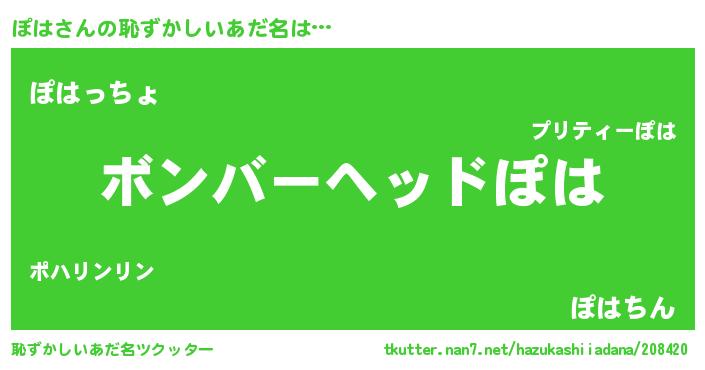 | 料理風あだ名 | 『ぽはの炊き込みご飯』『ぽはのトマト煮』 |