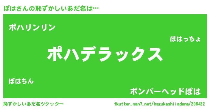 | ヘコむあだ名 | 『ぽはお』『酢こんぶ』『ぽは(笑)』 |