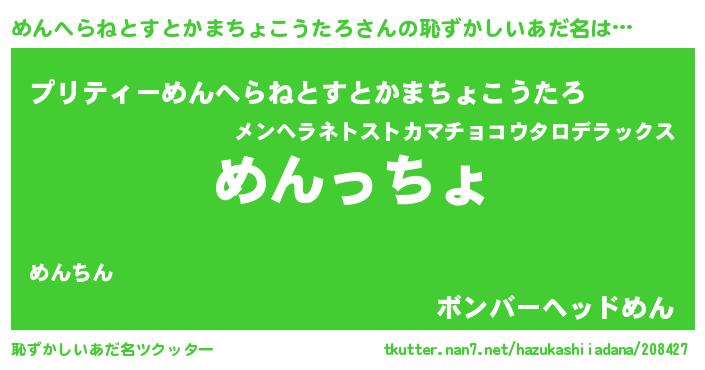 | 欧米人風あだ名 | 『めんへらねとすとかまちょこうたろクリステル』 |