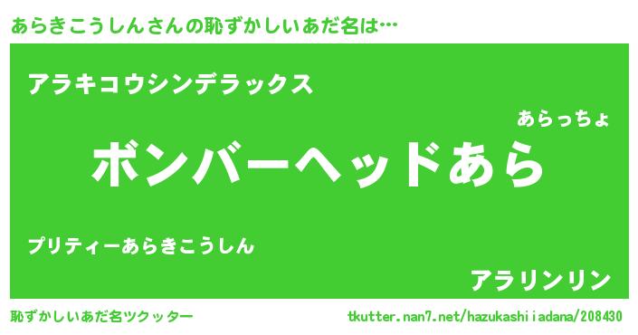 | ヘコむあだ名 | 『あら太郎』『なまこ酢』『あらにー』 |