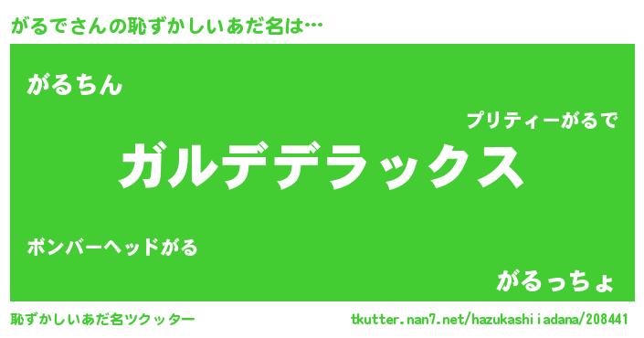 | 意味不明あだ名 | 『自称がるで』『永久保存がるで』 |